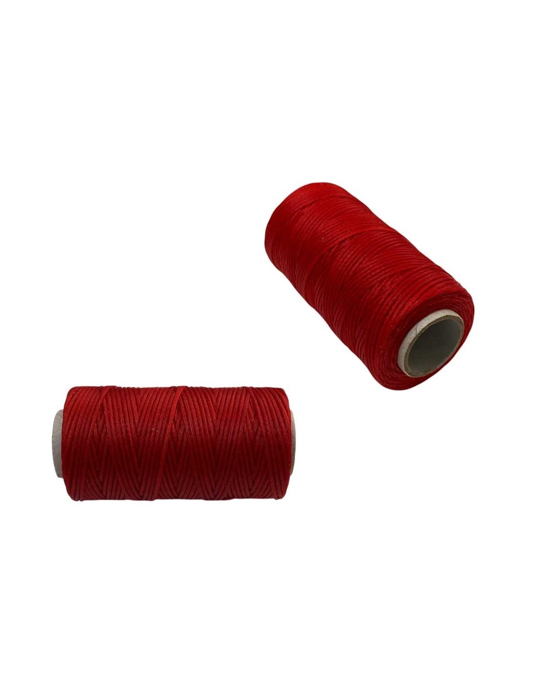 Bobina de fil encerat vermell de 1 mm , ideal per costura manual en cuir. El seu acabat encerat facilita el cosit, millora la subjecció i aporta gran resistència. Format pràctic de 50 metres, perfecte per a feines de marroquineria i detalls decoratius amb un acabat net i durador.