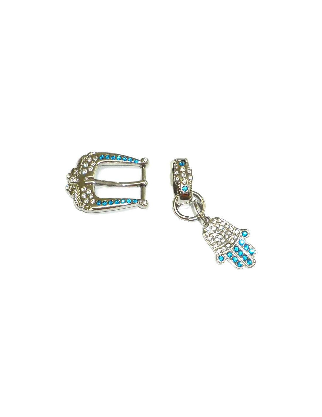 Original 2,5 cm buckle. Nickel with turquoise stones.