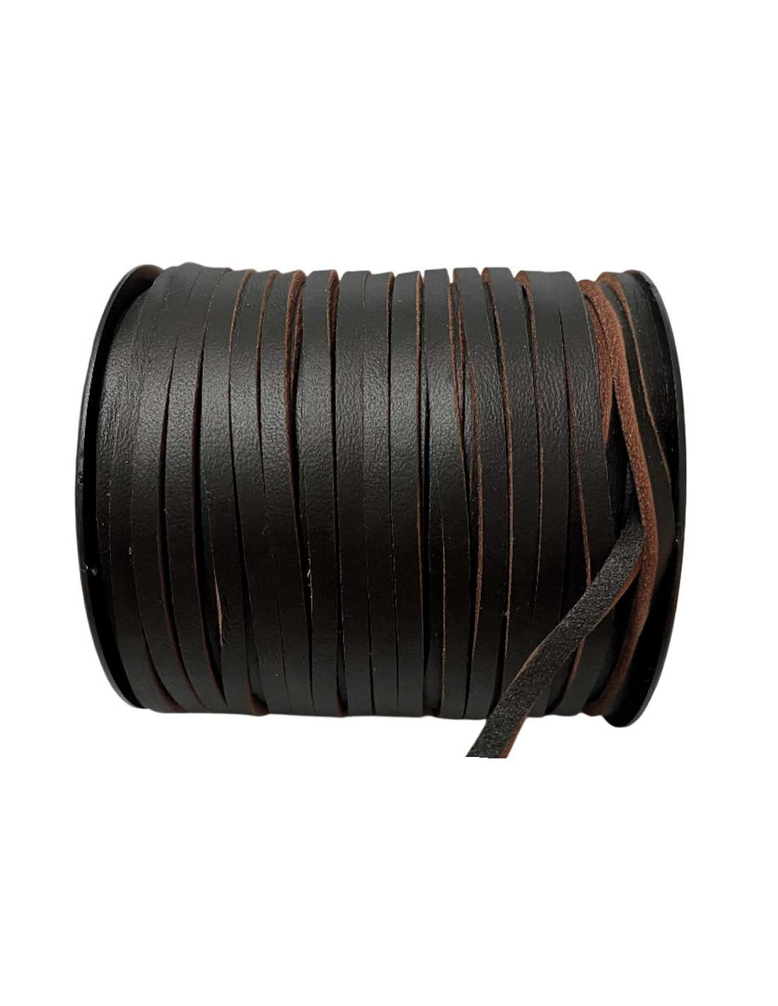 Este cordón plano de cuero en color marrón oscuro sin atravesar . Esta característica aporta un contraste rústico y artesanal, ideal para creaciones con estilo auténtico.