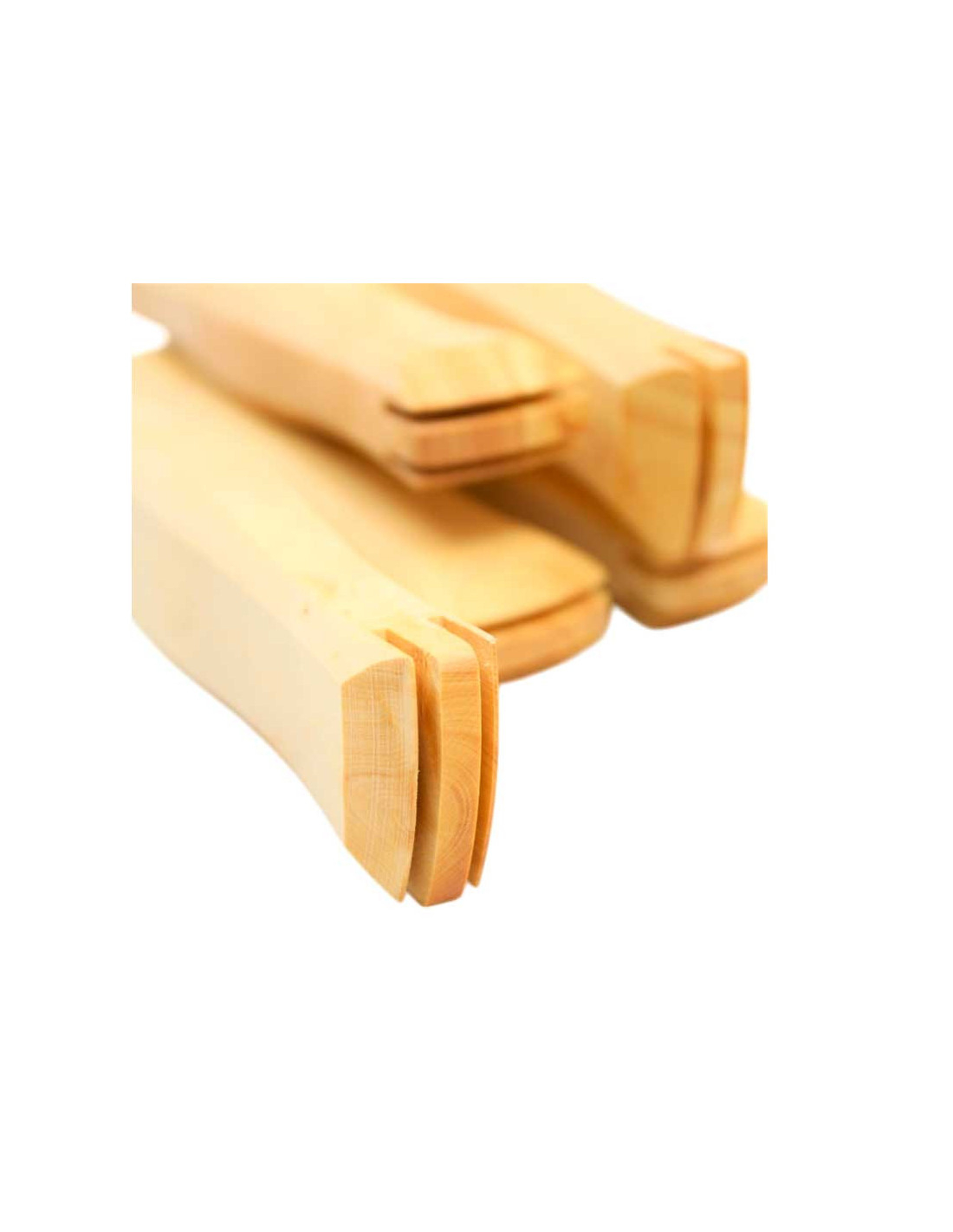 El boj europeo es una de las maderas más densas y resistentes a la abrasión. Tallada directamente en pequeñas ramas seleccionadas, cada pieza es única y puede mostrar: