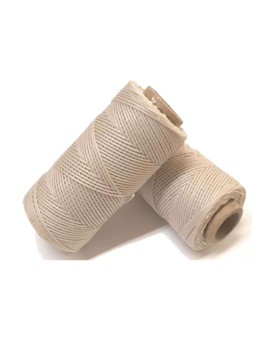 Bobine de fil ciré en coloris brut ou blanc cassé. Trois capes